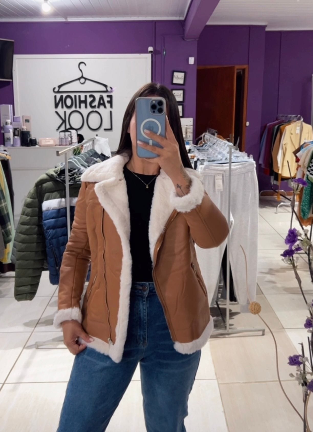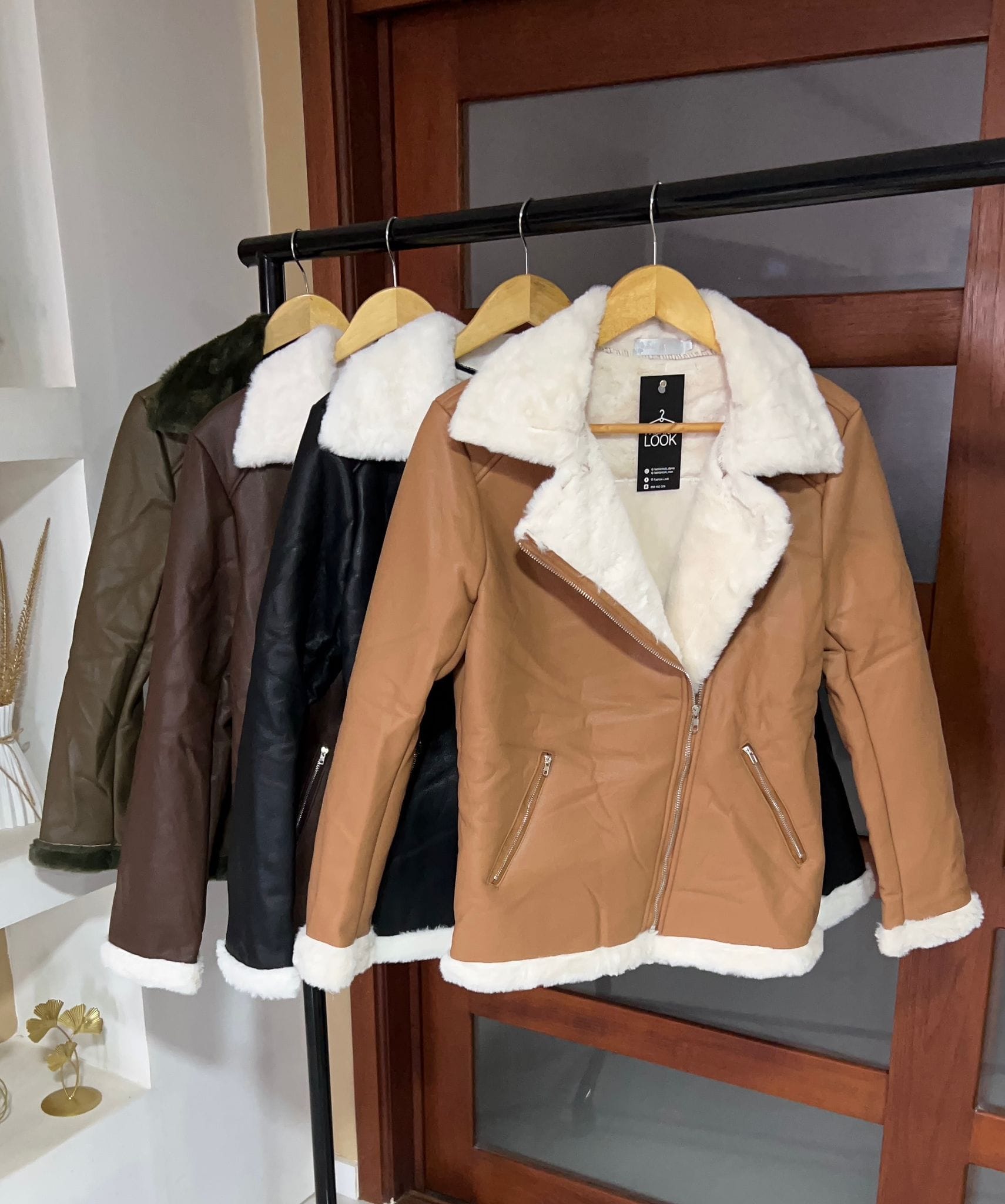 Modelo en ecocuero (no es elastizado) toda forrada con corderito por dentro. Los talles son un poco chicos.